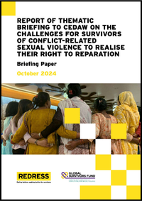 This publication builds on the discussions from a thematic briefing on reparation for survivors of conflict-related sexual violence held by REDRESS and the Global Survivors Fund during the 88th session of CEDAW. It highlights the challenges faced by survivors and the existing gaps in law and practice that hinder the fulfilment of their right to reparation. After analysing the relevant practice and jurisprudence from CEDAW, it also presents recommendations to this UN body to further support survivors in obtaining reparation.
